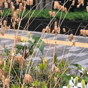 ドクダミの花とコバンソウって 仲良いのかな? 新大阪駅の北側で大きな車道の傍に ホッとする光景🌼