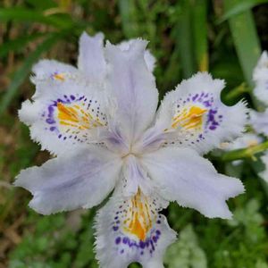 シャガの花は緑の中で目立ちます❗️ やっと花畑の隅で、咲いてきました❣️ 春の花の仲間入りです! 実家の母にねだって、 花畑にあちこち植えました 半日陰でも咲いて、美しい‼️