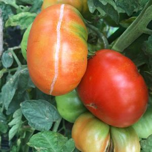 ヨーロッパ品種の大玉トマト2つ。 イタリアトマトのロマネスコとおフランスのマーマンド。