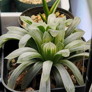 Haworthia cooperi var. pilifera, JDV96-014, Brakkloof, Grahamstown 荒鋸歯青肌のデータですね もすこし育つと棘が繋がりだして輝きが増す増す やっぱGrahamstown周辺のは期待値高い。 それなりのサイズだったやつが夏前に溶けてしまって画像が無いのが残念🫠 これももしやH. infoeda n.n.と呼ばれるやつなのか?わかりませんが。