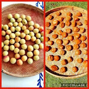 土用の丑の日は 過ぎてしまいましたが、やっと 晴天が続きそうなので漬けた梅を干してみました 一日干すとこんなに小さくなってしまうんですね。 取り出した時 硬くてびっくりしました💦 干す度に皮は柔らかくなってくるのでしょうか?🤞🤞🤞 また 梅酢に戻して明日また 干してみます😌