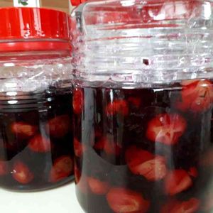 土用干しした梅を赤紫蘇・氷砂糖・酢に漬け込みました。色がきれいに染まり、落ち着いたら(甘梅干し)の出来上がり。さてさて、上手く出来るかしら💦
