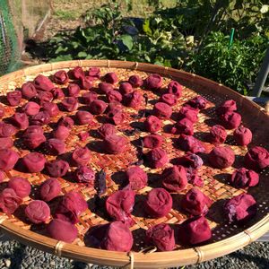 梅仕事終盤戦 三日三晩の土用干し 幼い頃、同居していた祖母が毎年梅干しを作った ビールケースに曾祖父が作った巨大なザルを置いて、土用干しをしていた 庭で遊んでいる時によくつまみ食いをした その景色を再現したくて、梅干しを作ったのかもしれない