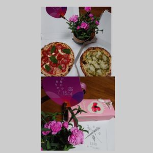 May.15,2023 【mother′s day~ありがたやー】 ただのプチ幸せ🍀自慢😆です。 よかったらお付き合いください😃 息子が、学生時代のバイト先にてピザを作ってプレゼントしてくれました。 (お店の皆様お邪魔致しましてすみません💦&ありがとうございます!) #彼女ちゃんからお菓子♪ #父には好物の鳥からを🎶 #カーネーション:綺麗なピンクのプリティローズ(品種名:プリティセリース) #後で地植えにしよう #for_my_little_garden🥀🌿
