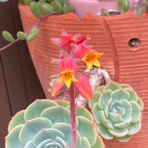 こんばんは😃🌃 今日も一日お疲れ様でした<(_ _*)> 先日先輩花友から頂いた七福神お花開いてきました💓初めてなので可愛い~💕💕 ドルフィンネックレスも💚💚 ホントにイルカの様ですね😉💚💕⤴ 増えてくれたら嬉しいです😉💓⤴ 大事に育てます💕ヾ(o´∀`o)ノ♬~