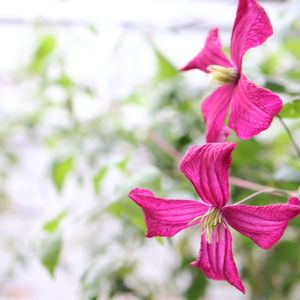 クレマチス マダムジュリアコレボン 二番花が開花しました🌺🌺 花弁が6枚の子もいます 一番花より色が濃いですね☺️