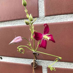 ビチセラ系のクレマチスがほしいと思っている時に、出会ったマダムジュリアコレボン。家族に内緒でこっそり購入しました(笑) 剪定されていて脇から新芽がいくつか出ている状態でした✨植え替えて10日程経ち、ずいぶん成長してきたので、今朝枝数を増やすために剪定✂︎これから二番花に向けて誘引頑張ります♬