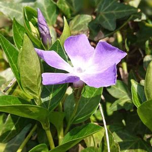 *ツルニチニチソウ* 今年もちらほらと咲き始めました。 どんどん増え続け、石垣を埋めつくす勢いです!!