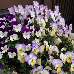 *ビオラ* 3種類が仲良く咲いてます。 こんもりしてきました💗