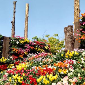 花の大谷 富山黒部の雪の大谷を模して 全てチューリップで壁を作ってあります🌷 富山県砺波チューリップ公園にて (2022年5月3日)