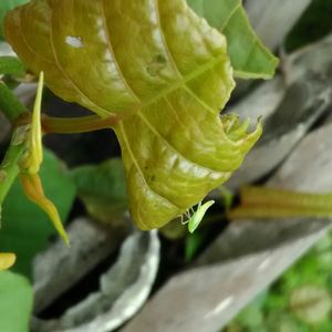 ツマグロオオヨコバイの赤ちゃんでしょうか☺ イタドリの葉にたくさんくっ付いていました。 跳躍力抜群でした😆