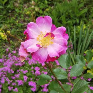 ラベンダードリーム、濃いピンクがすぐに退色してグラデーションになってます☺️名前に惹かれました🌹そのまま置いとくと秋に赤い実をならせてくれてそれも可愛いです