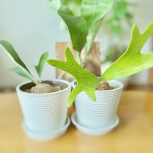 ビカクシダ♡ コウモリランたち 植え替えしました〜♪ 植え替えしてあげなきゃ〜💦って 思いながらも ずっと後回しにして約2年(^^;) やっと作業ができて 気持ちがスッキリしました(˶ᐢᗜᐢ˶) 奥のビカクシダは セリアの木材で板付しました 手前の子たちは 苔玉仕立てに してたのだけど 調子悪くなったので 鉢に植え替えて 経過観察します😂 ②が 2年前の 元気だった頃…👉🏻👈🏻💕 アルシコルネと ネザーランド どっちがどっちか 分からなくなりました(^^;