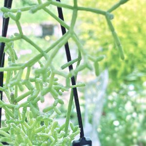 リプサリス セレウスクラヘアリー♡ そこに いますよ〜🤣 見えます? 後ろの景色と同化しちゃった💦 ②アップで♪ 気になっていた子 お迎えしました🌿 園芸店では 今まで サラッと 見てただけなので サボテンの仲間と知って ちょっとビックリ でも よく見ると 多肉状の茎に刺がある〜♪ 不思議な草姿してます(*´∀`*) 森林系サボテンって 言うらしくて 🌵お家のサボちゃんと 育て方違って 年間を通して日陰で育てる方が いいみたい〜デス𓂃𖤥𖥧𖥣⋆*