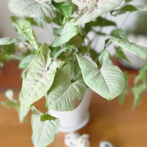 シンゴニウム ミルクコンフェッティ♡ ピンク色の斑入りの 淡い〜ミントグリーンの葉っぱが 乙女心。。。を くすぐります〜💓 えーと 乙女だって??って🙄 ツッコミなしよ笑 シンゴちゃんのそばで チラッと写ってるのは 牛さんです🐮𓈒𓂂𓏸 陶芸で うし🐮さん 作りました〜♪ ③④ポリゴナム牧場🐄 𖡼..𖤣𖥧 来年の干支「午年」なのに 馬 でなく 牛 を作成です🤣 そこも ツッコまないでね🤣