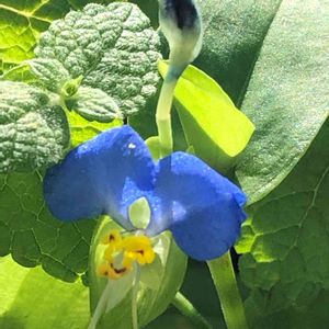つゆ草をアップにして 驚いた。可愛い😍小さな 黄色の花がさいているなんて🌼 しらなかったわ〜💛