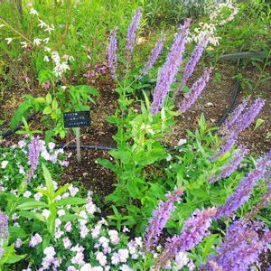 名札の『エキノプス』Echinops キク科 (ルリタマアザミ)と 写真の紫の花とは 違う花💠の 様です? 細長い紫色の花の名前を 教えて下さい!❗️ 『 アジュガ 』でしょうか? 似ていますが、違う様です😅