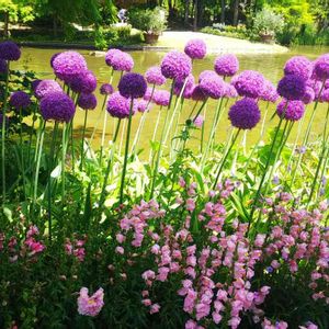 アリウム・ギガンチウム & キンギョソウ 💠 Allium giganteum ネギ科 ネギ属 💠 Antirrhinum majus 和 名 = 金 魚 草 💠 その他の名前 スナップドラゴン🐲 ( 英 名 ) オオバコ科 ( or ゴマノハグサ科 ) マユス ( majus )は 5月の意味 久屋大通庭園 『 フラリエ 』 2018年 5月 12日 13時 10分 撮 影 💓