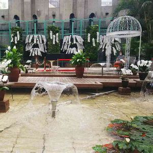 スイレン(熱帯睡蓮?)と 白い胡蝶蘭 2018年 6月 30日 久屋大通庭園『フラリエ』