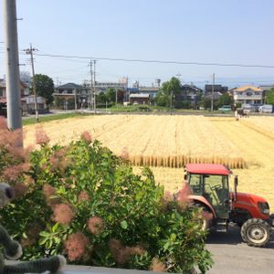 筑紫野平野の麦畑 刈り取りもあと少し 黄金の麦畑になりますね 息子一家と太宰府へ向かってます⛩