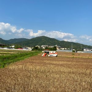 おはようございます😃 ただいま20度さわやかに晴れてますが、夜から雨の予報☀️ 🏷木曜モフモフ 町内麦畑の定期観察は最終回です👋 偶然刈り取り現場に遭遇✂️🌾 左の方の畑は坊主になってた🤣