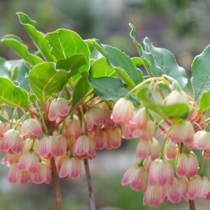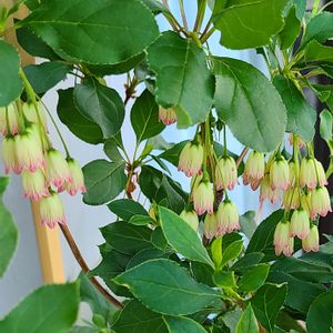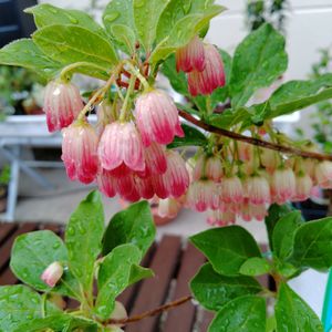 ふたつめ ドウダンツツジ 口紅錦 ツツジ科落葉低木 特徴 つりがねをつるしたような形の花が、無数に、開花する珍しい花です。 作りやすく日本の風土にも、よく合います。 開花期、3月下旬~6月頃 用土は、砂質壌土に、ピートモスを、2.3割混ぜた用土 鉢植えでも、良く生育します。 肥料は、4月~8月に 化成肥料か、油かすを、与える。