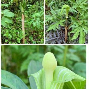 びっくりです。 庭に、よく山でたまに見かけるマムシクサが!😱😱😱 まさにヘビ🐍って感じです。 ん?🙄大金💴でも舞い込んで来ないかなぁ〜?😂😂😂