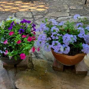 ヒメツルニチニチソウ(ビンカ・ミノール)→上下 〜造園会社のオフィスの庭で〜 ツルニチニチソウ(ビンカ・マジョール)→左 〜散歩中のご近所の庭の垣根からはみ出して〜 ヒメツルニチニチソウに ビンカ・ミノール(Vinca minor )なんて 素敵な名前があるのを知らなかった(°▽°) ガーデナーさんのオフィスの庭で この可愛い花を見ていたらビンカ・ミノールって仰って 奥から小さな苗鉢を持って来て下さった 家のベランダのデュランタの鉢に植えてみた(右上) ついでにツルニチニチソウを調べたら Vinca majorビンカマジョールだった😄 どの花も英名、和名があるのは分かってるけど しみじみいい名前だなぁと思いました😌 庭師のMさん、いつもありがとうございます😊