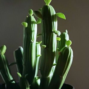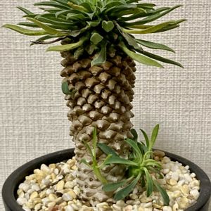 みどりんちにはこんなコもいます。 モナデニウム・シエベリエンセ、 すべらかで柔和な見た目だけどカッチカチです。 トウダイグサ科。もとはモナデニウム属だったのが今はユーフォルビア属に統合されたらしい。 和名を‘大樹’という。原産地タンザニアでは樹高3mにもなるからだそう。でもネット上で画像がヒットしないので、どんなふうに育つものなのか謎~。 太いミルクブッシュみたいになるのかな🤔