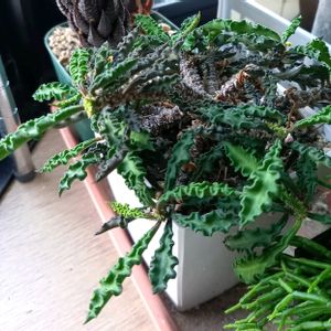 ユーフォルビア「デカリー」 小さい新芽の時から葉っぱがウネウネ🌿 鉢増しして大株にしようか思案中🤔