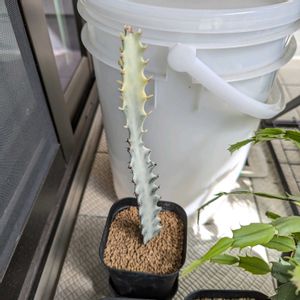ユーフォルビア・ホワイトゴースト。購入してから1年くらい動きがありませんでしたが7月頃から急に動き出しました。上の色が薄い部分だけ伸びました。