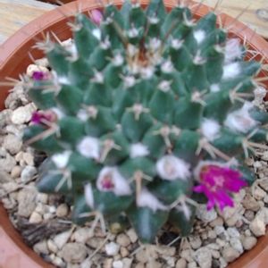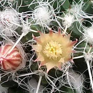 サボちゃんにお花 咲いたーー 咲いている~の方が正しい🤣 名札📛が無くなっているので名前分からず😂 ついでにプリムラのモネちゃんも色が悪くなってきている(つд`)