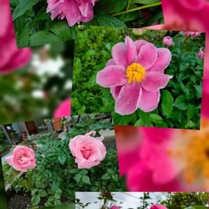 シャクヤク & 薔薇🌹 咲いてました (*˘︶˘*).。*♡ ↘イヌバラかな😅 午前中はまだ暑くて☔降るなぁと願いながらのお仕事💦