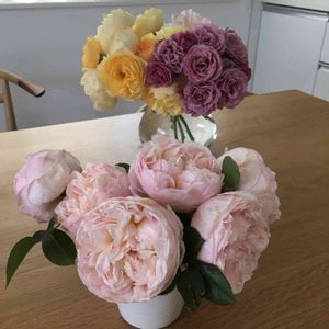 剪定で切り落としたエヴリン。良い香り。蕾は開かないかもだけど、もったいなくて捨てられませーん! 剪定で疲れた体と心が癒されます。やっぱりバラの花が大好きなので剪定誘引頑張ります! しかし手強くて心が折れそうー😱