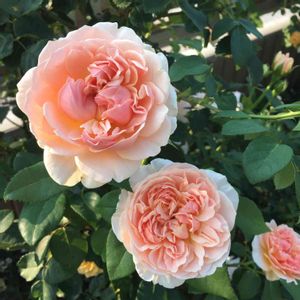 エヴリン。来年はフェンスにつけて、わんさか咲く予定♡なんとも表現しがたい、甘いような爽やかなような、素晴らしい香りです✨そしてかわいいアプリコットピンクなのです✨