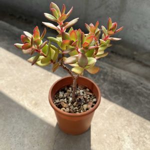 先月購入した謎の子(多分クラッスラ?)、どんどん赤くなっている!(1枚目が最新) すごい!買ったときは黄緑だったのにー!前は日光が足りてなかったのかもね😂今後の変化も楽しみ😊
