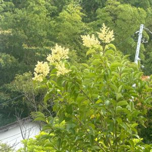 線香花火が弾けたみたいですね😮 最近目につくこの木は何かなと気になっていました🤔 トウネズミモチの木のようです🔍 木全体が薄緑色になっています😀