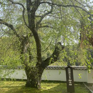 高月院… 枝垂れ桜🌸家康が植えたらしい… …完全に葉桜🍃 仕方ないね😅遅すぎだね💦 でもやっぱり満開見たかったぁ😓 とても静かなお寺です 門の外になぜか…椎茸?? 椎茸の原木にしては太いよね~🧐