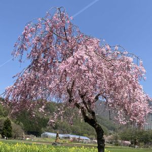 枝垂れ桜 1⃣2⃣ 山中湖花の都公園の枝垂れ桜が満開でした。4月29日 3⃣ 枝垂れ桜と富士山 4月29日 4⃣5⃣ フジザクラ(富士桜)別名 マメザクラ 雫の付いた桜も風情があって素敵です。 4月24日 関東から中部にかけて自生する桜の原種です。富士山麓や箱根などに見られ、小ぶりな樹形と花びらが特徴です。 樹高や花びらが小ぶりで、他の桜と比べて可愛らしいです. 花の色は白色から淡いピンク色. 一重咲きで、花弁は5枚. 花は下向きに咲くきます. 🏷 日曜は日本を感じる和の花