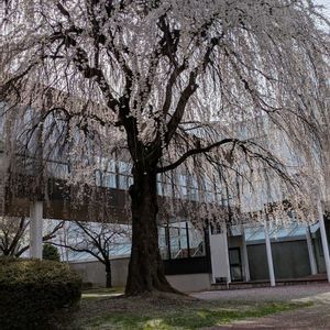 近くの大学キャンパスに行ってきました。 枝垂れ桜と桜並木のソメイヨシノが満開でした🌸 最後桜の木 枝にも桜の花が咲いていますけれど この木のみ幹に直接 桜の花が散らばる様に 咲いてましたよ🌸🌸🌸