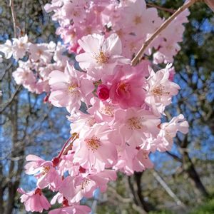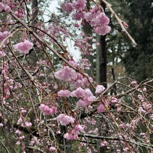 こんばんは 朝から何度もトライしていますが、なかなかアップ出来ず…とうとう夜になりました🙇♀️ 今度こそ、アップ出来ますように💓 静岡便りの続編です 枝垂れ桜(八分咲き)がとても綺麗でした。 2025.4.1撮影 生憎の☔️でしたが、花弁の色は、ピンクを一層増して、至る所で咲いていました。 里山の中、ほぼ全部が枝垂れ桜です。ソメイヨシノなどは、ほぼ見つけられずでした。 雨滴が邪魔をするし、歩きながらの撮影なので、画像が不鮮明なのが残念なのですが。 また、杉木立の中は、空気も美味しく、苔むしたせせらぎは、気持ちが休まる風景でした。