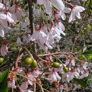 畑のど真ん中にあるシダレザクラです。 既に開花のピークを過ぎて、 強風で桜吹雪が舞ってます。 葉っぱも段々目立ってきました。 近所のご婦人に「綺麗ですねぇ」と言われましたが、 「もうお花も終わりで、葉桜になってきてます。」 とお伝えすると、 「緑も綺麗でコントラストが素晴らしい」と言われました。 葉っぱも出てきましたが、 花の後に実もなっているのが 見えます。 シダレザクラの傍では、 黄色いチューリップも咲いています。