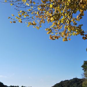 お昼の公園 紅葉に秋空💕💕 毎年出る銀杏、 無人販売❤ 1袋買いました、 焙烙ないけど😅🎵🎵