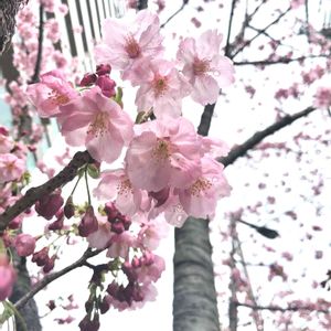 桜の🌸花びらが歩道に散って綺麗でした🌸🌸🌸🌸🌸 来年は笑って花見をしたいですね🌸🎶😊
