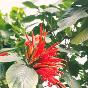 先日の温室で朱赤色の花を咲かせていました🌻 名札は「アフェランドラ・プルケリマ* Aphelandra pulcherrima」 貴重な出逢いでした。 デイゴの花にも似ていますね😊