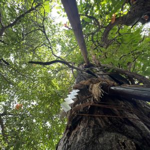 🎼 花も嵐も 踏み越えて 行くが男の 生きる道 泣いてくれるな ほろほろ鳥よ 月の比叡を 独り行く 🎶 松竹映画「愛染かつら」から、主題歌「旅の夜風」です ♪ 今から87年前、1938年(昭和13年)の歌です ♪ 😚 愛の山河 雲幾重 心ごころを 隔てても 🎤 🙆🏻♂️ 待てば来る来る 愛染かつら やがて芽をふく 春が来る 〽️ 😉 大阪夏祭り、一番のり 愛染まつり 6/30、7/1 🌻 💁🏻♂️ 余韻を楽しみに 来たで!愛染かつら 🌻 夫婦和合の霊木、桂にしっかりと絡みつくノウゼンカズラ 🌀 🙋🏻♂️ 愛染かつら 桂 旦那 さん⁈ 葛 嫁 さん⁉︎ 樹齢数百年という桂の巨木、なんか枯れてるようにしか見えへんのやけど… 👏🏻 なんでも桂は戦争で枯死、絡んで締め付けられて… じゃなくてホッ 🙌🏻