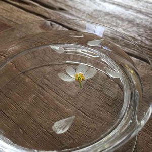 サンカヨウ、雨の日を待てず、水に浮かべてみました! 家に帰った時には、ガラス細工のように透明に??!!