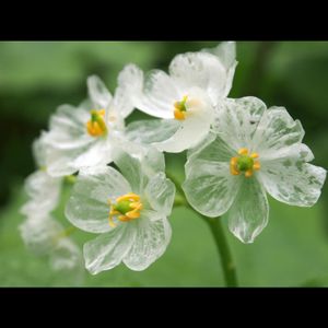 こんばんは(╹◡╹)♡♡♡🎶 今日、会社で同僚に今の時期白い花で雨に濡れるとガラス細工みたいに透明になるお花テレビでやってたよ!と聞いて調べると載ってました(╹◡╹)♡♡♡ 早速、ポチッとしてしまった🤣 サンカヨウと言うお名前の花です😍✨✨✨ お持ちの方いらっしゃるかな⁇ ps これは、ネットで見たサンカヨウのお花です、、上の白いお花が雨に濡れると下のように透明になるらしいです。
