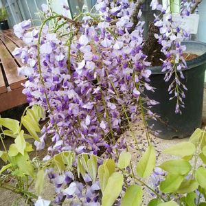 花センターの鉢植えの藤、雨模様だったので少し寂しげ
