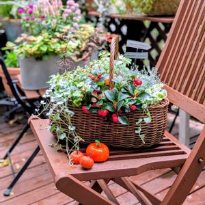 こんばんわ〜✨🌛 9月23日に一寄せ植え直後一度投稿を… 半月程経過をしバスケット一杯にモリモリさんに素敵に成長をしてくれました😊 艶々の真っ赤なチェッカーベリー❤️ 真っ赤に鈴なり〜🤩❤️ 斑入りジュズサンゴ🪸がやっと実が実り可愛ぃ〜🧡 シルバーリーフのディコンドラが伸びてタラリン〜いい仕事をしてます🤍✨🤍✨ シルバーのクッションブッシュプラチーナがバスケットの中でいいアクセントになってます🤍✨🤍✨